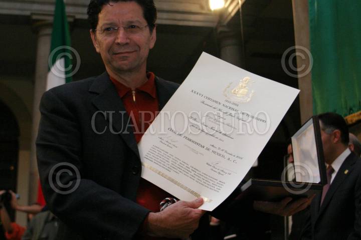 MÉXICO, D.F., 06DICIEMBRE2006.-El periodista Alberto Tinoco Guadarrama, recibió un premio por parte del Premio Nacional de Periodismo del Club de Periodista a su labor informativa. FOTO: MOISÉS PABLO/CUARTOSCURO.COM