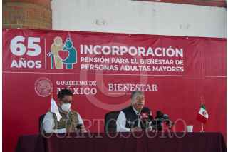 TOLUCA, ESTADO DE MÉXICO, 18ABRIL2022.- Juan Carlos González Romero Delegado estatal de Programas para el Bienestar en el Estado de México en conferencia de prensa informó sobre el inicio de la Vacunación Masiva contra COVID-19 en el Estado de México del 18 al 30 de abril y el inicio del Operativo de Incorporación para el Programa Bienestar de las Personas Adultos Mayores en la entidad mexiquense de 65 años en adelante. FOTO: CRISANTA ESPINOSA AGUILAR /CUARTOSCURO.COM