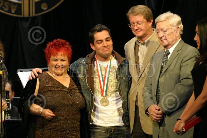 MEXICO, D.F. 06DICIEMBRE2006.- Rosalía Buaúb Sánchez, presidenta de la Asociación Nacional de Locutores de México, Omar Chaparro, galardonado y Herbeto Castillo, delegado de Coyoacán, durante la ceremonia de entrega de premios de dicha Asociación. FOTO: NELLY SALAS/CUARTOSCURO.COM