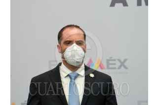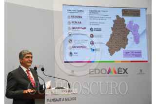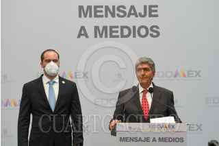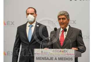 TOLUCA, ESTADO DE MÉXICO, 18ABRIL2022.- Ernesto Nemer Álvarez Secretario General de Gobierno del Estado de México acompañado por Rodrigo Martínez-Celis Wogau Secretario de Seguridad, reportó saldo blanco en la entidad mexiquense durante Semana Santa, derivado de los diversos operativos que fueron implementados en los principales destinos turísticos mexiquenses; también informó sobre la puesta en marcha de la Vacunación Masiva contra COVID-19 del 18 al 30 de abril para personas mayores de 18 años. FOTO: CRISANTA ESPINOSA AGUILAR /CUARTOSCURO.COM