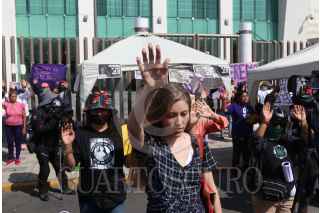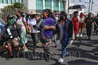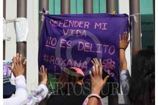 NEZAHUALCÓYOTL, 18ABRIL2022.- Se lleva a cabo audiencia de Roxana en los Juzgados de Nezahualcóyotl. Esta mañana en acompañamiento de colectivas feministas de las periferias lograron sacar amparo para que pueda seguir su proceso jurídico en libertad. Al lugar también acudieron familiares del hombre muerto quién fue privado de su libertad al violar a Roxana y ella defenderse. FOTO: ANDREA MURCIA /CUARTOSCURO.COM