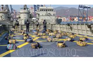 MANZANILLO, COLIMA, 10ABRIL2022.- La Secretaría de Marina logró el aseguramiento de aproximadamente mil setecientos kilogramos de presunta cocaína, así como de una embarcación menor; además de la detención de cuatro presuntos transgresores de la ley, en la costa de Manzanillo, Colima. FOTO: SEMAR/CUARTOSCURO.COM