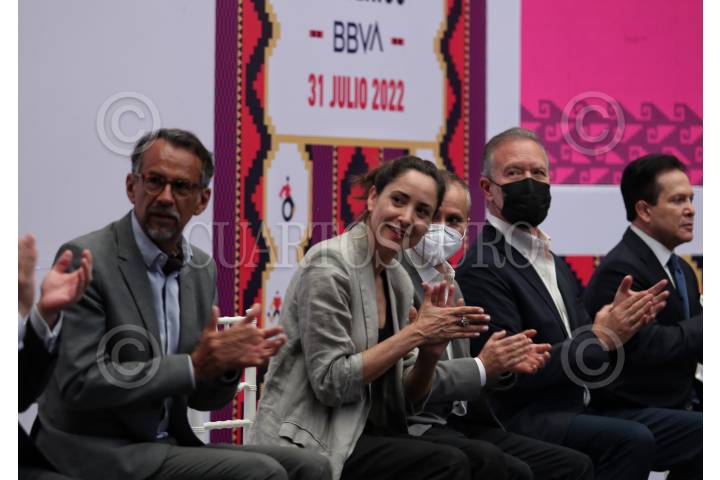 CIUDAD DE MÉXICO, 20ABRIL2022.- Javier Ariel Hidalgo Ponce, director de INDEPORTE; Claudia Stella Curiel de Icaza, secretaria de Cultura de la Ciudad encabezaron la presentación del Maratón de la Ciudad de México Telcel 2022 y Medio Maratón BBVA 2022. La conferencia se llevó a cabo en el Museo de la Ciudad. FOTO: ANDREA MURCIA /CUARTOSCURO.COM