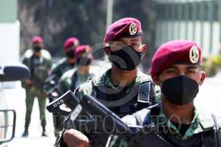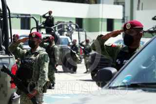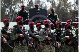 CUERNAVACA, MORELOS, 20ABRIL2022.- Banderazo del despliegue “Fuerza de Tarea Conjunta México” en la 24va Zona Militar. La fuerza esta integrada por 200 elementos de la Brigada de Fusileros Paracaidistas pertenecientes al Ejercito Mexicano, los cuales operaran en los municipios de Jiutepec, Temixco, Emiliano Zapata y Yautepec a partir de este día hasta el 4 de mayo, esto con el fin de coadyuvar con las autoridades de seguridad del estado. FOTO: MARGARITO PÉREZ RETANA / CUARTOSCURO.COM