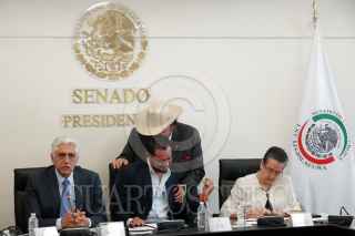 CIUDAD DE MÉXICO, 21ABRIL2022.- El senador Raúl Paz Alonso y Germán Martínez Santoyo, titular de la Comisión Nacional del Agua, encabezaron la Reunión de Recursos Hidráulicos, realizada en el Senado de la República. FOTO: GRACIELA LÓPEZ /CUARTOSCURO.COM