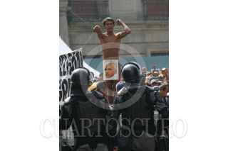 MEXICO, D.F. 07DICIEMBRE2006.- Integrantes de los cuatrocientos pueblos se manifestaron a las inmediaciones del senado de la República en solución a sus demandas. FOTO: NELLY SALAS/CUARTOSCURO.COM