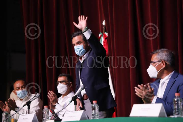 AGUASCALIENTES, AGUSCALIENTES, 21ABRIL2022.- El director general del Instituto Mexicano del Seguro Social (IMSS), Maestro Zoé Robledo, afirmó que la vacuna contra COVID-19 ha sido clave para reducir el número de hospitalizaciones y decesos a causa de este virus, por ello es de gran relevancia que la población participe en la estrategia intensiva de vacunación del sector salud. Durante un acto realizado en el Teatro del IMSS en Aguascalientes, que contó con la presencia del doctor Miguel Ángel Piza Jiménez, secretario de Salud de Aguascalientes, en representación del gobernador Martín Orozco Sandoval, Zoé Robledo destacó que en este esfuerzo convoca la participación de servidores públicos, cámaras empresariales, personal sanitario y universidades para ser parte de algo muy grande: salvar vidas, “eso ha significado la vacunación contra COVID-19 en el país”. FOTO: IMSS/CUARTOSCURO.COM