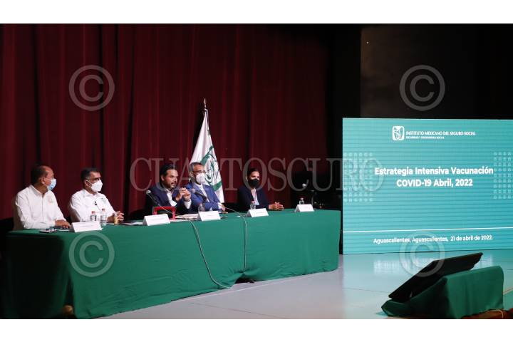 AGUASCALIENTES, AGUSCALIENTES, 21ABRIL2022.- El director general del Instituto Mexicano del Seguro Social (IMSS), Maestro Zoé Robledo, afirmó que la vacuna contra COVID-19 ha sido clave para reducir el número de hospitalizaciones y decesos a causa de este virus, por ello es de gran relevancia que la población participe en la estrategia intensiva de vacunación del sector salud. Durante un acto realizado en el Teatro del IMSS en Aguascalientes, que contó con la presencia del doctor Miguel Ángel Piza Jiménez, secretario de Salud de Aguascalientes, en representación del gobernador Martín Orozco Sandoval, Zoé Robledo destacó que en este esfuerzo convoca la participación de servidores públicos, cámaras empresariales, personal sanitario y universidades para ser parte de algo muy grande: salvar vidas, “eso ha significado la vacunación contra COVID-19 en el país”. FOTO: IMSS/CUARTOSCURO.COM