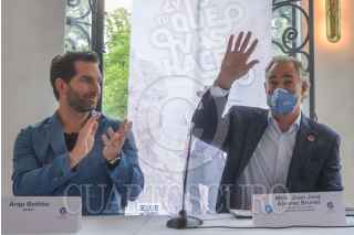 CIUDAD DE MÉXICO, 21ABRIL2022.- Arap Bethke, actor, y Juan José Álvarez Brunel, secretario de Turismo de Guanajuato, encabezaron la presentación de la serie televisiva ¿Y tú, tú que vas hacer” en un reconocido restaurante de Polanco. FOTO: MARIO JASSO/CUARTOSCURO.COM