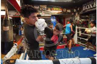 CANCÚN, QUINTANA ROO, 21ABRIL2022.- Con más de 20 años de experiencia como entrenador de boxeo, el profesor Celestino Castro Chavelas, es el encargado de forjar a las nuevas generaciones de pugilistas en el Caribe Mexicano, a quienes ha logrado posicionar como referentes en esta disciplina en competencias nacionales. El también fundador del gimnasio ‘World Champion Cancún’ ubicado en la Región 95, ha motivado a decenas de niños y jóvenes de la localidad para entrenar en sus instalaciones, con el fin de arrebatárselos a las calles e implementarles disciplina a través del deporte. FOTO: ELIZABETH RUIZ/CUARTOSCURO.COM