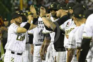 MÉRIDA, YUCATÁN, 23ABRIL2022.- La noche de ayer, se llevó a cabo la inauguración de la campaña 2022 de la Liga Mexicana de Beisbol en la casa de los Leones de Yucatán, en el estadio Kukulcán Alamo que cumple 40 años desde su construcción. Con pizarra de 5 carreras a 1, los melenudos lograron su primera victoria ante los Bravos de León destacando la labor del cubano nacionalizado mexicano, el abridor Yoanner Negrín quién dominó con su pitcheo desde el arranque de este encuentro. FOTO: MARTIN ZETINA/CUARTOSCURO.COM