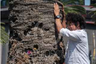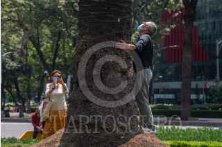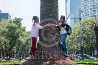 CIUDAD DE MÉXICO, 23ABRIL2022.- Personas se despiden de "La Palma" tomándose fotografías y abrazándola, ya que será retirada el próximo 24 de abril derivado a una infección por hongo. FOTO: MARIO JASSO/CUARTOSCURO.COM