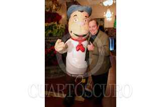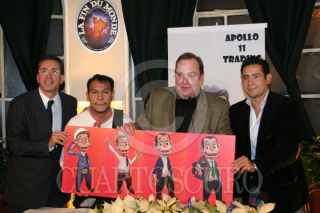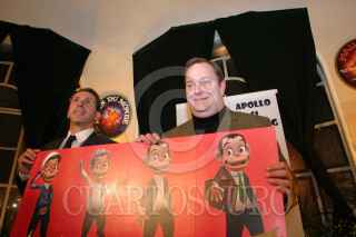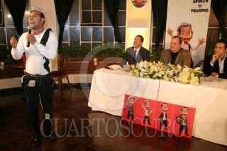 MÉXICO, D.F., 07DICIEMBRE2006.- Alberto Franyuti, director de mercadotecnia y publicidad de Cantinflas, Celedonio, Marío Moreno Ivanova, hijo de Marío Moreno Cantinflas y Alberto Silva, durante la presentación del proyecto de la marca registrada "Cantinflas" en el Casino Militar. FOTO: MOISÉS PABLO/CUARTOSCURO.COM