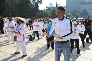 CIUDAD DE MÉXICO, 24ABRIL2022. El director del Indeporte Javier Hidalgo asistió al encuentro “México con el mundo, unidos por el Tai Chi” donde se impartió una clase masiva en la explanada del Monumento a la Revolución. FOTO: EDGAR NEGRETE/CUARTOSCURO.COM