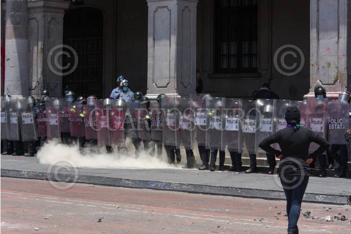 TOLUCA, ESTADO DE MÉXICO24ABRIL2022.- Mujeres integrantes de colectivas feministas se manifestaron en Palacio de Gobierno pegando pegando fichas de búsqueda de mujeres desaparecidas en el Estado de México, como parte de las jornadas de protesta a nivel nacional por la violencia que viven las mujeres a diario; policías estatales resguardaron el lugar. FOTO: CRISANTA ESPINOSA AGUILAR /CUARTOSCURO.COM