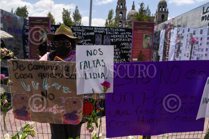 TOLUCA, ESTADO DE MÉXICO24ABRIL2022.- Mujeres integrantes de colectivas feministas se manifestaron en Palacio de Gobierno pegando pegando fichas de búsqueda de mujeres desaparecidas en el Estado de México, como parte de las jornadas de protesta a nivel nacional por la violencia que viven las mujeres a diario; policías estatales resguardaron el lugar. FOTO: CRISANTA ESPINOSA AGUILAR /CUARTOSCURO.COM