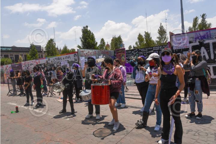 TOLUCA, ESTADO DE MÉXICO24ABRIL2022.- Mujeres integrantes de colectivas feministas se manifestaron en Palacio de Gobierno pegando pegando fichas de búsqueda de mujeres desaparecidas en el Estado de México, como parte de las jornadas de protesta a nivel nacional por la violencia que viven las mujeres a diario; policías estatales resguardaron el lugar. FOTO: CRISANTA ESPINOSA AGUILAR /CUARTOSCURO.COM