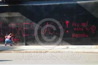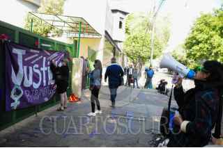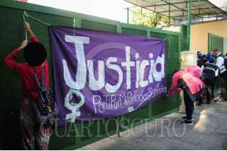 CIUDAD DE MÉXICO, 25ABRIL2022.- Integrantes de colectivas feministas se manifestaron afuera de los juzgados de la capital para apoyar a las tres mujeres que en días anteriores fueron desalojadas del edificio de la CNDH ubicado en el centro histórico. FOTO: DANIEL AUGUSTO /CUARTOSCURO.COM
