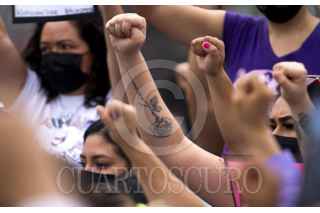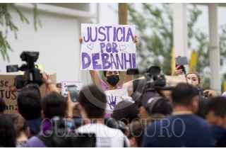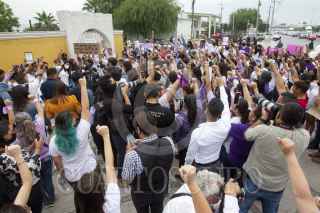 ESCOBEDO, NUEVO LEÓN, 25ABRIL2022.- Mujeres de diversos colectivas se reunieron en las afuera del Motel Nueva Castilla ubicada sobre la carretera a Laredo para realizar un homenaje a Debanhi Escobar, quien perdió la vida en el lugar. Así mismo los asistentes pidieron justicia y esclarecimiento de los hechos. El motel ha sido resguardado para continuar con las indagatorias de la muerte de Debanhi. FOTO: GABRIELA PÉREZ MONTIEL /CUARTOSCURO.COM