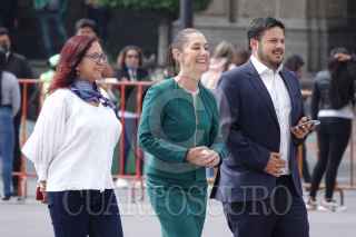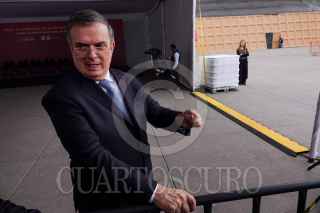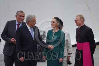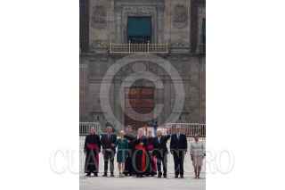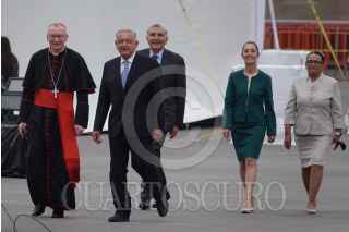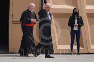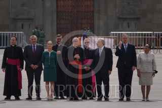 CIUDAD DE MÉXICO, 26ABRIL2022.- Andrés Manuel López Obrador, presidente de México, en compañía de: Roberto Lucchini, encargado de la Nunciatura del Vaticano; Rosa Icela Rodríguez, secretaria de Seguridad y Protección Ciudadana; Adán Augusto López, secretario de Gobernación; Claudia Sheinbaum, jefa de gobierno de la Ciudad de México; el canciller Marcelo Ebrard; Pietro Paroline, secretario de Estado del Vaticano; Andrea Picciioni, Oficial de la Secretaría de Estado del Vaticano, y el padre Antee Vitdovic, encabezaron un recorrido por la réplica de la Capilla Sixtina instalada en el Zócalo capitalino. FOTO: GALO CAÑAS/CUARTOSCURO.COM