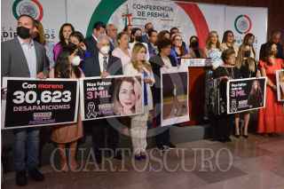 CIUDAD DE MÉXICO, 26ABRIL2022.- Annia Sarahí Gómez, diputada del PAN, e integrantes del mismo grupo parlamentario, ofrecieron conferencia de prensa para exigir justicia por las víctimas de feminicidio y desapariciones de mujeres durante las recientes administraciones de Morena. FOTO: MARIO JASSO/CUARTOSCURO.COM