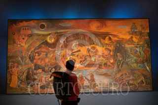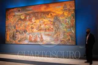 CIUDAD DE MÉXICO, 26ABRIL2022.- Se realizó un recorrido para medios por la exposición del mural Xibalbá, el inframundo de los Mayas, de Rina Lazo (1923-2019), en el Museo del Palacio de Bellas Artes. Estuvieron presentes la hija de la artista Rina García Lazo y la curadora Dina Comisarenco. FOTO: MOISÉS PABLO/CUARTOSCURO.COM