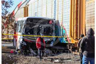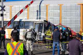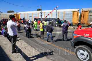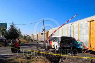 TOLUCA, ESTADO DE MÉXICO, 27ABRIL2022.- Un persona muerta y 18 más lesionadas fue el saldo de un accidente en el que un camión de pasajeros de la línea Insurgentes intentó ganarle el paso al tren en la carretera Toluca-Palmillas, cuerpos de emergencia atendieron a algunos heridos en el lugar y otros fueron trasladados para su atención. FOTO: CRISANTA ESPINOSA AGUILAR /CUARTOSCURO.COM