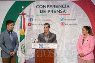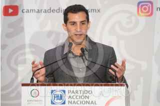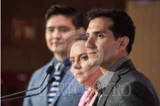 CIUDAD DE MÉXICO, 27ABRIL2022.- Rommel Pacheco, diputado del PAN, ofreció conferencia de prensa, en compañía de Janet Marian Alonso, escritora, y Juan Alonso, en donde anunciaron la presentación del libro Violencia Vicaria antesala de la muerte. FOTO: MARIO JASSO/CUARTOSCURO.COM