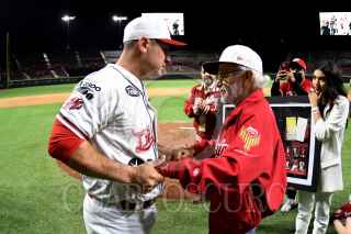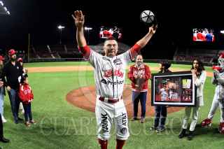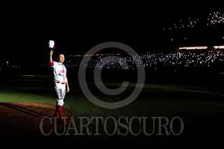 CIUDAD DE MÉXICO, 27ABRIL2022.- Iván Terrazas se despidió del beisbol profesional como jugador de los Diablos Rojos del México. Como ya lo había advertido el histórico capitán escarlata dijo adiós a el diamante en el Estadio Alfredo Harp Helú durante el partido contra los Mariachis de Guadalajara. FOTO: CORTESÍA ENRIQUE GUTIÉRREZ/CUARTOSCURO.COM