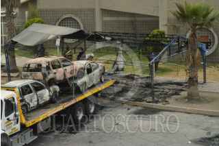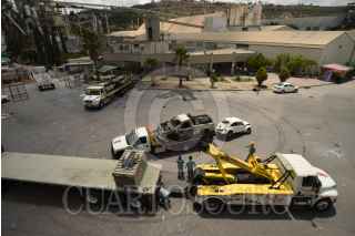 TULA, HIDALGO, 27ABRIL2022.- Ocho muertos, once lesionados, nueve detenidos y por lo menos ocho unidades vehiculares dañadas fue el saldo del enfrentamiento registrado la madrugada del miércoles en la planta Cruz Azul, ubicada en Tula de Allende. Peritos acudieron a realizar los peritajes en la zona para integrar las respectivas carpetas de investigación. FOTO: FRANCISCO VILLEDA/CUARTOSCURO.COM