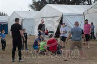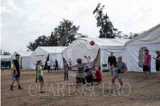 CIUDAD DE MÉXICO, 27ABRIL2022.- Un albergue con capacidad para recibir hasta 200 ucranianos fue instalado en el Deportivo Francisco I. Madero, en la alcaldía Iztapalapa. Al menos 80 personas refugiados provenientes de Ucrania y antes asiladas en Tijuana llegaron desde el lunes al albergue improvisado en Iztapalapa el cual se mantiene resguardado por elementos de seguridad. FOTO: ANDREA MURCIA /CUARTOSCURO.COM