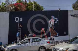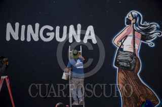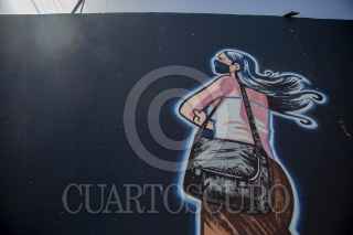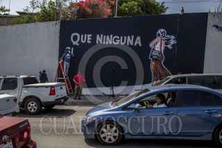 TIJUANA BAJA CALIFORNIA, 27ABRIL2022.- Dos personas realizaron un mural para solidarizarse con las mujeres desaparecidas del país. El mural se refiere a Debanhi, la joven que desapareció y luego fue encontrada sin vida en Nuevo Leon. La imagen se encuentra sobre el bulevar Cuauhtémoc Sur a la altura de la colonia Libertad. FOTO: OMAR MARTÍNEZ /CUARTOSCURO.COM