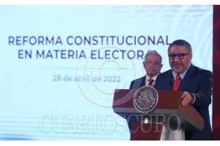 CIUDAD DE MÉXICO, 28ABRIL2022.- Andrés Manuel López Obrador, presidente de México acompañado de Adán Augusto López Hernández, secretario de Gobernación; Rosa Icela Rodríguez Velázquez, secretaria de Seguridad y Protección Ciudadana; Ricardo Mejía Berdeja, subsecretario de Seguridad Pública de la Secretaría de Seguridad y Protección Ciudadana (SSPC); Horacio Duarte Olivares, titular de la Administración General de Aduanas y Pablo Gómez Álvarez, titular de la Unidad de Inteligencia Financiera durante conferencia de prensa en Palacio Nacional. FOTO: ANDREA MURCIA /CUARTOSCURO.COM