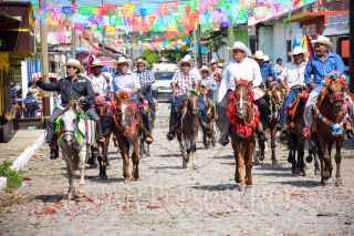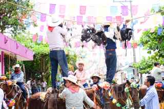 TUXTLA CHICO, CHIAPAS, 28ABRIL2022.- Esta comunidad se encuentra de fiesta los días 28 y 29 de abril en donde celebran a su santo patrono San Pedro. Entre las tradiciones que se realizan son las carreras a caballos. Mañana reparten dulces y hacen una guerra de dulces de azúcar. Sus habitantes señalan que no le fallan a su santo, ya que muchos de ellos han enfermado y por su intervención divina se recuperaron. FOTO: DAMIÁN SÁNCHEZ/CUARTOSCURO.COM