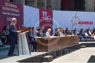 CIUDAD DE MÉXICO, 28ABRIL2022.- Andrés Manuel López Obrador, Presidente Constitucional de los Estados Unidos Mexicanos, encabezó la 125 Asamblea General Ordinaria del Infonavit en el Patio Central de Palacio Nacional. Lo acompañan Claudia Sheinbaum Pardo, Jefa de Gobierno de la Ciudad de México; Carlos Martínez Velázquez, Director General del Fondo Nacional de la Vivienda para los Trabajadores; Olga Sánchez Cordero Dávila, Presidenta de la Mesa Directiva del Senado de la República; Sergio Carlos Gutiérrez Luna, Presidente de la Mesa Directiva de la Cámara de Diputados; Adán Augusto López Hernández, Secretario de Gobernación; Luisa María Alcalde Luján, Secretaria del Trabajo y Previsión Social; Román Meyer Falcón, Secretario de Desarrollo Agrario, Territorial y Urbano. FOTO: PRESIDENCIA/CUARTOSCURO.COM