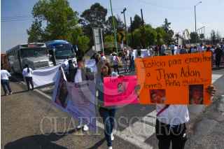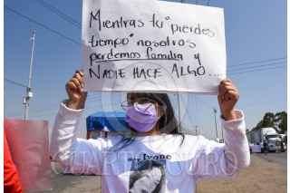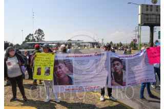 TOLUCA, ESTADO DE MÉXICO, 29ABRIL2022.- Familiares de personas desaparecidas en el Estado de México bloquearon en ambos sentidos la autopista Toluca-Atlacomulco en la caseta “El Dorado” y la carretera libre, exigiendo a las autoridades trabajen en la búsqueda de sus familiares y esclarecimiento en cada uno de sus casos, ante la falta de atención por parte de las autoridades estatales. FOTO: CRISANTA ESPINOSA AGUILAR /CUARTOSCURO.COM