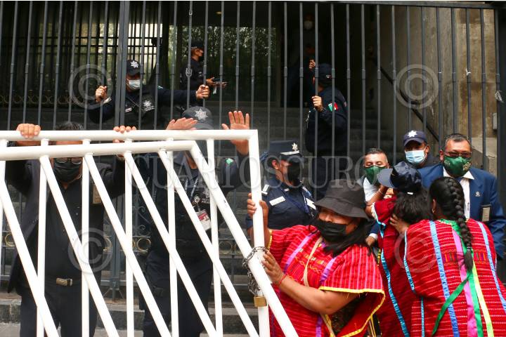 CIUDAD DE MÉXICO, 29ABRIL2021.- Mujeres triquis desplazadas por la violencia que se vive en Tierra Blanca Copala, Oaxaca, realizaron un bloqueo sobre la avenida Bucareli para posteriormente intentar ingresar a la Secretaría de Gobernación en busca de entablar una mesa de diálogo con Alejandro Encinas Alejandro Encinas, subsecretario de Derechos Humanos de Segob. FOTO: ROGELIO MORALES /CUARTOSCURO.COM
