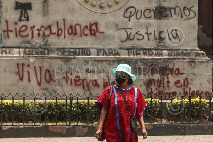 CIUDAD DE MÉXICO, 29ABRIL2021.- Mujeres triquis desplazadas por la violencia que se vive en Tierra Blanca Copala, Oaxaca, realizaron un bloqueo sobre la avenida Bucareli para posteriormente intentar ingresar a la Secretaría de Gobernación en busca de entablar una mesa de diálogo con Alejandro Encinas Alejandro Encinas, subsecretario de Derechos Humanos de Segob. FOTO: ROGELIO MORALES /CUARTOSCURO.COM