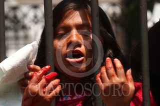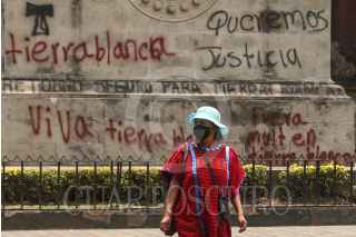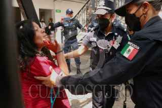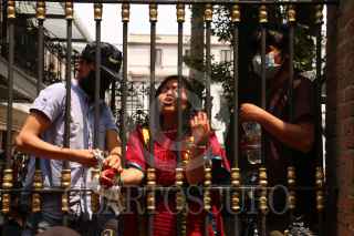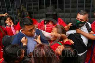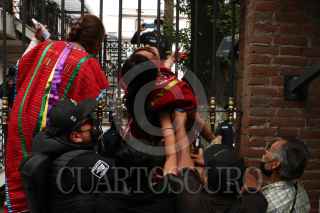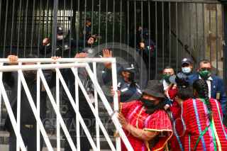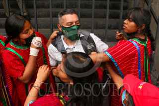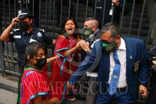 CIUDAD DE MÉXICO, 29ABRIL2021.- Mujeres triquis desplazadas por la violencia que se vive en Tierra Blanca Copala, Oaxaca, realizaron un bloqueo sobre la avenida Bucareli para posteriormente intentar ingresar a la Secretaría de Gobernación en busca de entablar una mesa de diálogo con Alejandro Encinas Alejandro Encinas, subsecretario de Derechos Humanos de Segob. FOTO: ROGELIO MORALES /CUARTOSCURO.COM