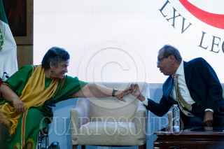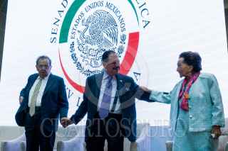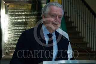 CIUDAD DE MÉXICO, 29ABRIL2022.- El político Porfirio Muñoz Ledo fue homenajeado por sus 70 años de carrera política en la ex sede del Senado de la República, en la colonia Centro. Al evento estuvo encabezado por Juan Francisco Ealy Ortiz, dueño del periódico El Universal, la senadora morenista Ifigenia Martínez y la senadora priista Beatriz Paredes Rangel, a su vez acudieron personajes como: el panista Santiago Creel, vicepresidente de la Cámara de Diputados; Lorenzo Córdova Vianello, consejero presidente del INE; la embajadora de México en Estados Unidos, Martha Bárcena; Amalia García, ex gobernadora de Zacatecas, así como amigos y familiares de quién fuera fundador del Partido de la Revolución Democrática (PRD). FOTO: GALO CAÑAS/CUARTOSCURO.COM