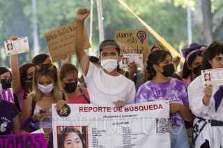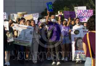 MONTERREY, NUEVO LEÓN, 29ABRIL2022.- Mujeres de diversos colectivos acompañaron a Gerardo Martínez, padre de Yolanda Martínez Cadena, desaparecida en San Nicolás de los Garza el 31 de marzo de 2022, a una marcha por calles del centro de la ciudad. La familia exige que su caso sea atendido. FOTO: GABRIELA PÉREZ MONTIEL / CUARTOSCURO.COM