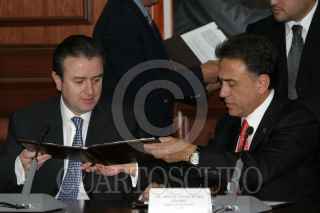 MÉXICO, D.F., 13DICIEMBRE2006.- Luis Peña Kegel, director de Banorte, durante la firma de convenio entre el ISSSTE y la institución bancaria en materia de créditos hipotecarios para sus derechohabientes. FOTO: MOISÉS PABLO/CUARTOSCURO.COM