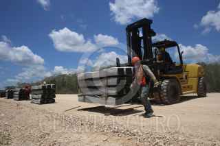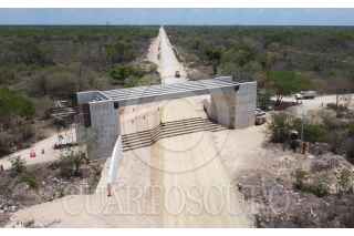MAXCANÚ, YUCATÁN, 30ABRIL2022.- Como parte de los trabajos del proyecto del Tren Maya, correspondientes al Tramo 3 Calkiní-Izamal entre los municipios de Maxcanú y Chocholá, trabajadores de la empresa Construcciones Urales, en asociación con GAMI Ingeniería e Instalaciones y AZVI, realizan la colocación y el tendido de 30 centímetros de grosor de piedra balasto así como la colocación de durmientes y rieles. De igual forma se puede observar el avance de los pasos inferiores vehiculares a lo largo de este tramo. De acuerdo a Fonatur son ya 105 mil empleos generados en el sureste de México gracias a este proyecto. FOTO: MARTÍN ZETINA /CUARTOSCURO.COM