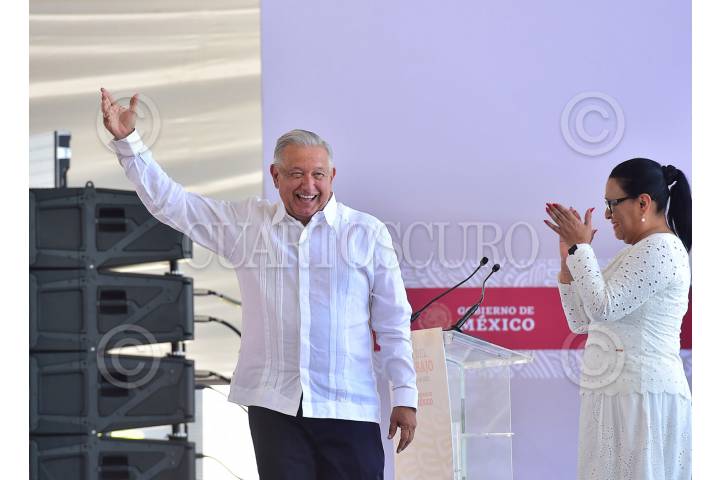 PARAÍSO, TABASCO, 01MAYO2022.- Andrés Manuel López Obrador, Presidente de México, encabezó el Día del Trabajo en la Refinería Dos Bocas “Olmeca”. Lo acompañaron: Rocío Nahle García, secretaria de Energía; Adán Augusto López Hernández, Secretario de Gobernación; José Rafael Ojeda Durán, secretario de Marina; Jesús Ramírez Cuevas, Coordinador general de Comunicación Social y vocero de la Presidencia; Luisa María Alcalde Luján, Secretaria de Trabajo y Previsión Social; Rosa Icela Rodríguez Velázquez, secretaria de Seguridad y Protección Ciudadana; Calos Manuel Merino, Gobernador de Tabasco y Juan Pablo de Botton Falcón, subsecretario de egresos de la SHCP. FOTO: PRESIDENCIA/CUARTOSCURO.COM