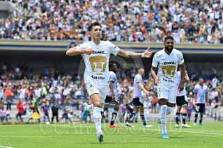 CIUDAD DE MÉXICO, 01MAYO2022.-Al imponerse por 2-0 a los Tuzos de Pachuca, los Pumas lograron avanzar a la reclasificación del torneo Grita México C22 de la Liga BBVA MX. Con un doblete de Juan Ignacio Dinenno lo universitarios doblegaron al líder torneo. FOTO: CORTESÍA CLUB PUMAS/CUARTOSCURO.COM
