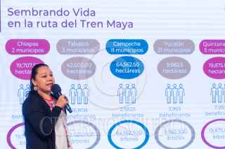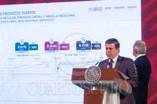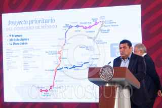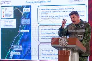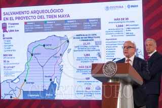 CIUDAD DE MÉXICO, 02MAYO2022.- Andrés Manuel López Obrador, Presidente de México, encabezó la conferencia mañanera en Palacio Nacional, en la cual abordó los avances del Tren Maya. Lo acompañaron: María Luisa Albores González, secretaria de Medio Ambiente y Recursos Naturales; Javier May Rodríguez, director general del Fondo Nacional de Fomento al Turismo; Diego Prieto Hernández, director general del Instituto Nacional de Antropología e Historia; Gustavo Ricardo Vallejo Suárez, General de Brigada, comandante de agrupamiento de Ingenieros de la Defensa Nacional, y Ricardo Sheffield Padilla, titular de la Procuraduría Federal del Consumidor (Profeco). FOTO: MOISÉS PABLO/CUARTOSCURO.COM