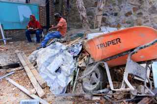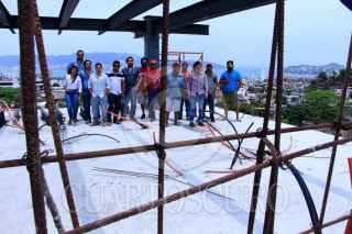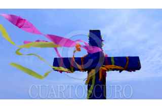 ACAPULCO, GUERRERO, 03MAYO2022.- Albañiles y demás trabajadores de la construcción celebraron el “día de la cruz”, para pedir por trabajo y no tener accidentes en las obras en donde trabajan, con comida y música colocaron en lo alto de un edificio en construcción la cruz adornada con papeles de colores. FOTO: CARLOS ALBERTO CARBAJAL/CUARTOSCURO.COM