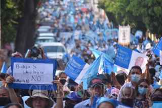 CHILPANCINGO, GUERRERO, 03MAYO2022.- Alrededor de dos mil personas de diferentes grupos religiosos marcharon este martes en Chilpancingo en rechazo a la iniciativa de ley para despenalizar el aborto en Guerrero. Los representantes del Frente Nacional por la Familia, indicaron que tres diputadas y un diputado, pretenden dar un albano y aprobar sin la mayoría esta iniciativa de ley, a la cual no sólo se oponen iglesias católicas, sino de otros grupos religiosos. A lo largo de la marcha, destacaron que la interrupción del embarazo desde las primeras semanas de la concepción es un homicidio, y con este tipo de leyes pretenden hacer creer que no lo es. Con Banderas azules, lonas y cartulinas, avanzaron por la Avenida Presidente Juárez llamaron a la sociedad general a no permitir que avancen este tipo de leyes en el Estado, pero mientras haya una oposición van a manifestarse. Ya en el Zócalo de Chilpancingo, manifestaron que estas ideologías no tienen nada que ver con lo que el Estado de Guerrero necesita y por donde le quieran ver representan “el asesinato de menores”. FOTO: DASSAEV TÉLLEZ ADAME/CUARTOSCURO.COM