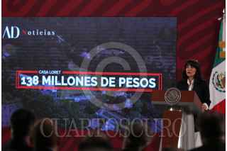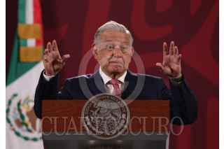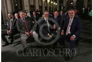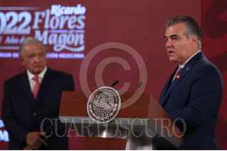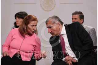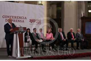 CIUDAD DE MÉXICO, 04MAYO2022.- Andrés Manuel López Obrador, presidente de México acompañado de Rogelio Ramírez de la O, secretario de Hacienda y Crédito Público; Tatiana Clouthier, secretaria de Economia; Adán Augusto López Hernández, secretario de Gobernación; Víctor Villalobos Arámbula, secretario de Agricultura y Desarrollo Rural;Jorge Arganis Díaz Leal, secretario de Infraestructura, Comunicaciones y Transportes; Ana Elizabeth García Vilchis; Ricardo Sheffield Padilla, titular de la Procuraduría Federal del Consumidor (Profeco); Liliana Mejía, Vicepresidenta Global de Asuntos Corporativos, Bimbo y Alberto Manuel Sepúlveda, Vicepresidente de Asuntos Corporativos de Walmart durante conferencia matutina en Palacio Nacional. FOTO: ANDREA MURCIA /CUARTOSCURO.COM