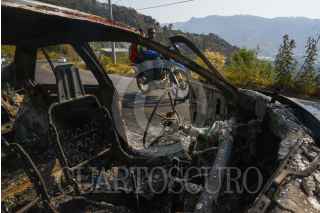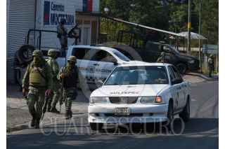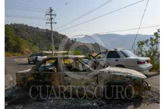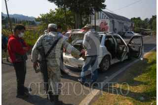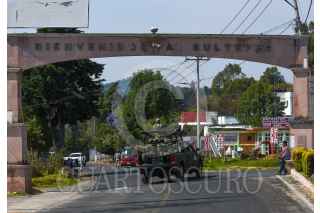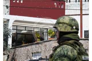 SULTEPEC, ESTADO DE MÉXICO, 04MAYO2022.- Elementos de la Guardia Nacional y del Ejército Mexicano resguardan el edificio del Centro de Justicia de Sultepec de la Fiscalía General de Justicia del Estado de México que el día de ayer fue baleado por varios hombres durante la tarde noche, de acuerdo a versiones oficiales solo se registraron dos personas heridas; los caminos de acceso a este municipio fueron bloqueados con automóviles que fueron incendiados. Algunos casquillos se pueden observar metros antes del Centro de Justicia. FOTO: CRISANTA ESPINOSA AGUILAR /CUARTOSCURO.COM